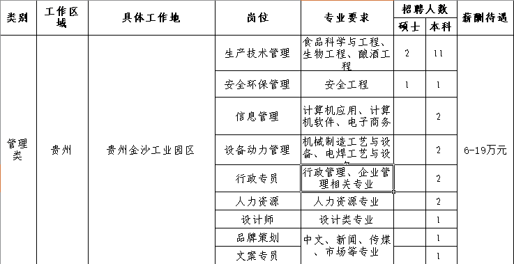 公司現(xiàn)有員工2000余人,固定資產(chǎn)達(dá)35億元,年產(chǎn)基酒達(dá)1.9萬(wàn)噸,老酒儲(chǔ)備達(dá)4萬(wàn)噸,是貴州第二大醬香型白酒生產(chǎn)企業(yè)。曾先后榮獲歷屆貴州八大名酒、中國(guó)馳名商標(biāo)、布魯塞爾烈性酒大金獎(jiǎng)等各種殊榮,獲得純糧固態(tài)發(fā)酵白酒標(biāo)志認(rèn)定和國(guó)家地理標(biāo)志保護(hù)產(chǎn)品認(rèn)定。2019年品牌價(jià)值達(dá)至268.06億元,銷售市場(chǎng)從貴州擴(kuò)展到北京、山東、河南、廣東、廣西、江蘇、安徽等全國(guó)27個(gè)省市。因公司發(fā)展需要,現(xiàn)面各高校及社會(huì)招聘一批優(yōu)秀人才?,F(xiàn)將有關(guān)事項(xiàng)公告如下: